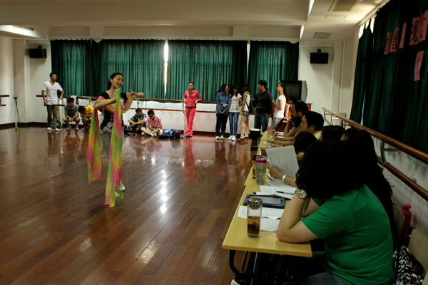 为了锻炼同学们的表现能力,给同学们一个展示自我的机会,我院筹备举办2012级新生才艺展。9月19日,新生才艺展选拔活动在奉贤校区五教A座形体房举行。伴随着无数憧憬和期待,各参赛选手蓄势待发、跃跃欲试。现场评委有院长赵炳翔、副院长邱乙哲、副院长徐君以及12级部分专业教师、辅导员。来自12级各班的学生代表到场助威。