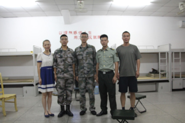 两名学生对于学院来探望十分感动,他们表示:“来到部队十个多月的时间里,已经习惯了这里的生活,这是部队和学校、学院领导关怀的结果。请老师和同学们放心,他们一定会在部队努力学好军事本领,做一名优秀的军人,决不辜负老师和同学们的期望。”