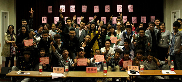 此次汇演中,由分别来自表演、播音主持、广报电视编导、动画班的9位同学以“我爱师大”为题进行了演讲,并由评委进行打分。最终一等奖由林宗阳同学获得,二等奖由王帅帅、杜世达同学获得,三等奖由刘畅、余艺、田雨鹤同学获得。李倩楠、孙浩、曹粤同学分别获得最佳口才奖、最佳台风奖、最受欢迎奖。演讲比赛结束后,