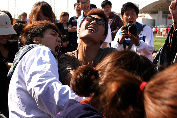 我院队伍首战对阵对外汉语学院,在经过两轮比赛后,我院轻松获胜,顺利晋级。一瞬间全场沸腾,同学们都欢呼雀跃,掌声、尖叫声都是我们发自内心的快乐,更是我们对谢晋学院满满的爱。在第二轮比赛中,我院对阵旅游学院,以微小差距被淘汰,但同学们并未因此气馁,而是表示决心要在运动会其他项目上争取更多的奖项!虽然我们不是最终的赢家,但是我们看到了我们的团队的力量是巨大的,我们的团队精神、我们的齐心协力才是我们今天最大收获!