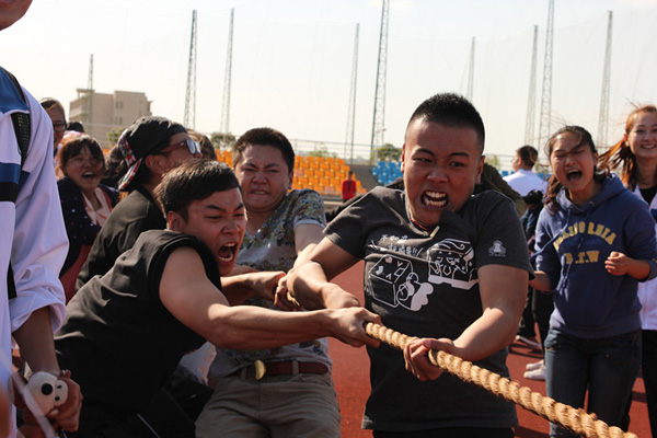 下午我院还参加了运动会拔河比赛预赛,比赛队员由8男8女组成。操场上,队员们都意气风发,摩拳擦掌,等待比赛的到来,不参加比赛的同学也都到达比赛现场为队员们加油助威。