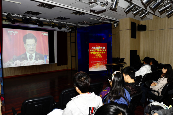 开幕式开始后,在党总支副书记副院长孙雅艳老师的带领下,同学们收看了开幕式的现场直播,胡锦涛总书记对过去五年的工作做了总结,归纳了我国在过去所取得的伟大成绩。在观看完开幕式之后,老师们与同学们对胡总书记的讲话展开了讨论,同学们纷纷表示作为媒体人要积极学习党的十八大,践行十八大,同时向祖国表达了最美好的祝愿。