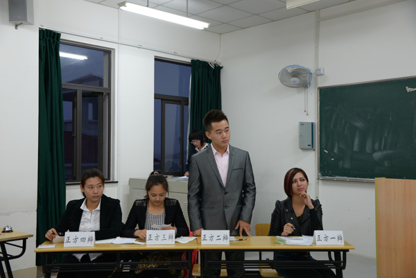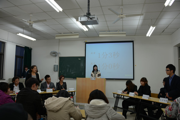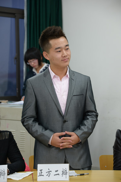 11月21号晚上16:30,2012年上海师范大学第十届“哲别杯”新生辩论赛复赛第二场在五教411正式拉开帷幕。由正方谢晋学院对阵反方人文学院就“当今中国应当更加注重义务教育还是精英教育”的辩题展开对决。我院播音主持班季榕泽、田地、马小越、战妍君分别作为正方一辩、二辩、三辩、四辩出场。