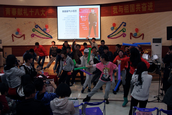 11月28日13:30,2012年上海师范大学团支书风采大赛决赛在大学生活动中心101室拉开帷幕,我院12级表演班范艺同学也成功晋级决赛。在第一环节中,范艺同学凭借一段诙谐幽默的开场个人介绍在一上场便成功吸引到了全场观众的眼球,场内气氛瞬间活跃起来。在谈到有关团支部的建设时,范艺同学注意抓住关键点,以细节处见真心,语言质朴却包含真情,避免了形式化的言辞,赢来全场阵阵掌声。在第二环节才艺展示中,表演班男生一曲动情的《情非得已》,让观众如痴如醉;紧而接着表演班全体的一段热辣的《江南 style》又让观众眼花缭乱,现场气氛也达到了高潮。最终凭借着范艺同学的出色表现和表演班全体同学的团结一心的精神,范艺同学在第二轮比赛中以81票的绝对优势胜出,并一举摘得“2012年度上海师范大学团支书风采大赛”的桂冠!