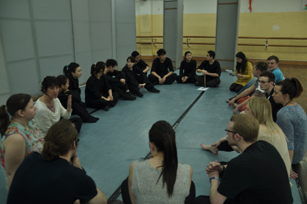 工作坊结束后,我院学生为英国师生演绎了根据鲁迅短篇小说改编的肢体剧《药》。学生们全身心的表演和大胆的想象代替了华丽的布景、美妙的服装和五颜六色的化妆,学生的表演成为了舞台的灵魂。伦敦南岸大学的师生对我院表演专业学生的出色表演给予好评,希望多多加强交流合作的机会。(张婉婉)