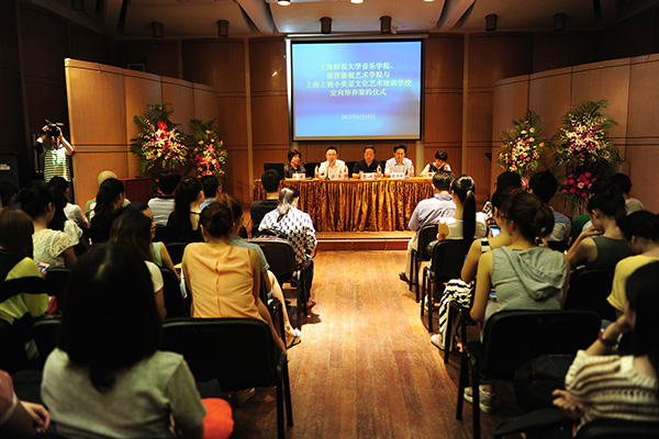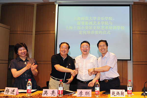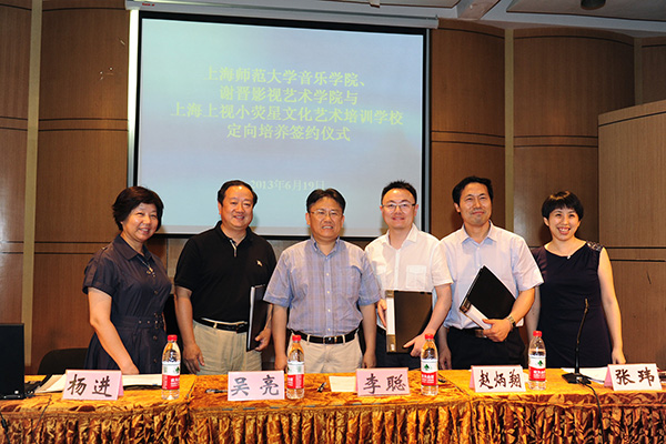 仪式上,三方领导共同签署了《上海师范大学音乐学院、谢晋影视艺术学院与上海上视小荧星文化艺术培训学校定向培养合作协议》。此次联合定向培养项目的签署,宣告了三方定向培养合作的开始,为两大艺术类学院毕业生抢占上海儿童艺术教育岗位开辟了新的渠道。