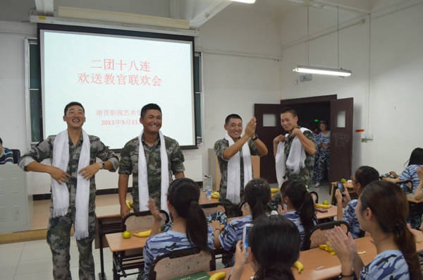 本次军训共十二天,期间学院领导赵炳翔、高亭、孙雅艳,专业教师糜曾、赵韬顺、高已原等多次到军训现场慰问、关心和鼓励大家。同时,连队开展了丰富的连排活动,如:榜样的力量——谢晋优秀学子宣讲暨团学干部招新;我的西部,我的梦——影像激活人生“三下乡”实践团巡讲;青春、理想、信念——新生入党启蒙教育;师恩难忘——谢晋学子教师节系列活动等。同学们在烈日的炙烤下,以顽强拼博的作风和敢于吃苦的精神,经受住了考验,顺利完成了规定科目。经过军训的洗礼,同学们的团队合作意识、纪律观念等有了进一步的提高,吃苦耐劳、坚韧不拔的精神得到了提升,为今后的学习与生活打下了坚实的基础。相信在以后的日子里2013级新生将会为学院,为学校取得更多荣耀。正如他们的口号:“十八连,最强,最强,最强!”,他们一定会唱响上师大的最强音!(通讯员:李奇儒,摄影:李金洲)