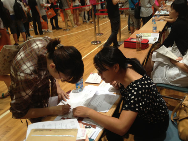 9月11日上午,我院迎来了首批戏剧戏曲学硕士生。在赵炳翔院长、高亭书记的部署指导下,学院副书记副院长孙雅艳老师、辅导员王姬文老师在徐汇校区西部球类馆为2013级研究生新生办理报到注册手续。