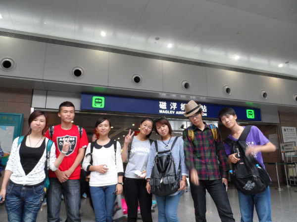 2013年10月5日早上六点半谢晋学院辅导员李川老师带领谢晋学子周楚垚,赵春祎等七人在班车集合点集中出发,开始为期一天的“游上海”活动。活动先后游览了上海著名景点:东方明珠——滨江大道——磁悬浮列车——浦东机场。