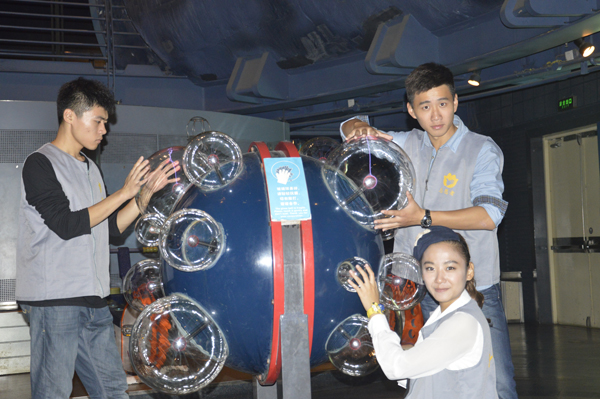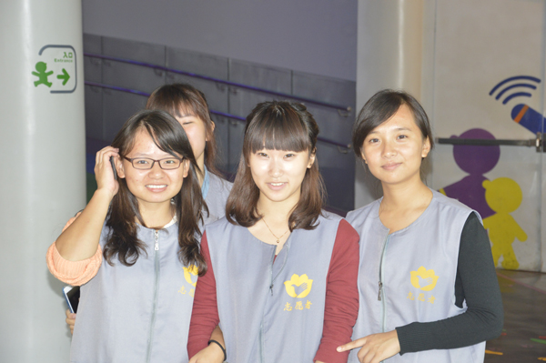 到达科技馆后,周楚垚、武文帅、唐坤负责乒乓球馆;韩文静、陈嘉韵、祖梦雅、罗慧玲负责儿童彩虹乐园;李节浩负责高空单车;王佳琪负责机器人音乐专家;胡芹负责发电的球;党臻负责高空吊椅;任潇雨负责转盘;白宇扬负责高级KTV;李超等人负责坐小车看电影。在此期间每一位志愿者都坚守着自己的岗位,与小朋友们和谐相处。负责乒乓球的志愿者们甚至没有休息时间,午饭也是在轮流吃。其它岗位的志愿者们尽量在休息期间去帮助他们,充分展现了我们学院团结互助的风采。