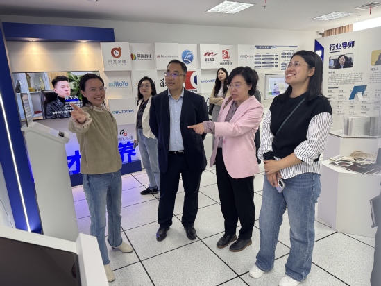 影视传媒学院一行抵达上海理工大学出版学院后,在张华书记、杨庆国副院长、程海燕系主任、张新新教授和张博教授的陪同下,参观了出版学院多个实验室。上海理工大学出版学院的老师们详细介绍了实验室的功能布局、设备使用情况及学生学习成果,影视传媒学院的老师们认真聆听并积极交流。