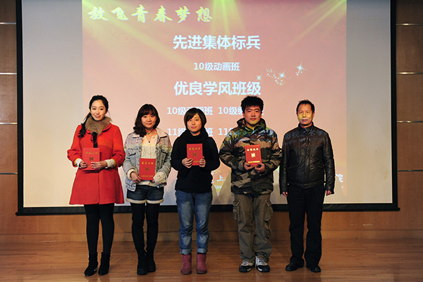 颁奖典礼由一段温馨励志的视频短片拉开帷幕,我院院长赵炳翔老师为大会致开幕词,党总支书记高亭老师宣读了谢晋影视艺术学院2013-2014年度表彰决定。颁奖大会对我院百余名优秀学生进行了表彰,出席领导和老师为获奖同学颁奖,并赠送同学们特别的“圣诞礼物”。此次大会授予10级动画班先进集体标兵,11级制作等5个班级优良学风班级,杨明骁等31名同学学习类奖项,明罡同学等29名同学才艺类奖项,马子良等24名同学志愿者类奖项,王亚婷等14名同学科研类奖项,刘淑蕾等10名同学优秀学生会干部、班干部奖项。此外,本次颁奖典礼特设两个特别贡献奖,分别授予退伍军人刘倬群和陈业浩两名同学,优秀学生代表做了激情四射,又有感染力的发言。