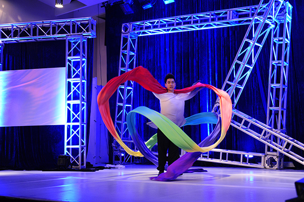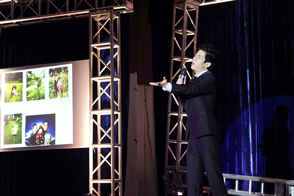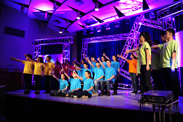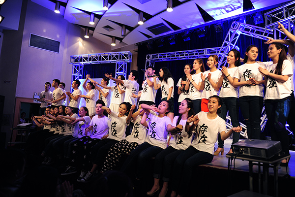 汇报的第一部分为《存——生为何存》,全班34位同学按照方阵分别身着不同颜色的T恤,展示了极具感染力的肢体节奏和不同声部的混响,伴随着介绍12级主持班每个人的VCR,全班同学纷纷上台用诗歌朗诵会的形式拉开了整台晚会的序幕。