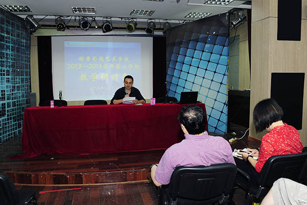 院长赵炳翔首先对本学期学院开展的各项工作进行了总结。本学期教学科研工作方面完成了四个专业的教学评估,校领导专家提出了各专业薄弱环节,为我院专业发展提供了方向与思路。同时积极推动专业间联合打造平台课程的建立,目前打造两个平台:一是专业间任意选修课平台,下设专业基础课和专业拓展课,让学生可以充分运用学院四个专业的资源选修到自己想学的课程;二是学科基础课平台,在朱恒夫教授带领的理论组老师开设艺术理论、艺术心理等学科基础课。突破了艺术生不仅有技能学习,也补充文化理论知识学习的瓶颈。艺术实践工作上赵院长高度评价了工作坊教学的成果汇报,赞扬了老师们在教学工作中用心用情付出,彰显了教师职业的良心与精神,增加了教师团队的凝聚力。在国际交流、学术建设等方面积极促进中外合作本科办学2+2项目、大力引进学术人才。并对下学期工作进行了初步布置,强调了下学期的重点围绕重抓学科建设、稳定规模。
