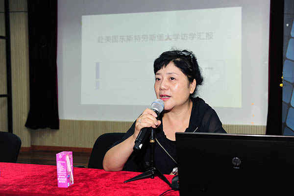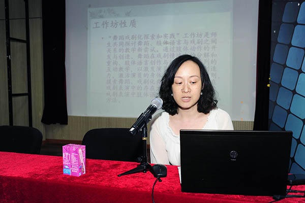之后,教学研究工作坊代表老师进行经验交流、互动沟通。王砾玉老师结合“舞蹈戏剧化探索和实践”工作坊,谈了目前对形体教学与实践的体会;表演专业唐剑威老师就本学期开展的工作坊——“蛙”进行了结项汇报,并对多年来学院领导、教师前辈们的帮助致以诚挚的感谢;孙美娜老师刚结束了在美国东斯特堡大学的访学,在教研会上进行了学习心得的分享。