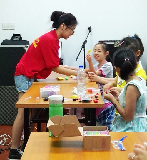 开班第二课,粘土班的教员们教小朋友粘土制作。课程开始,教员们先对粘土的属性向小朋友做了简单的介绍,并带领小朋友们看了许多精彩的粘土制作的工艺展品。小朋友们看的津津有味,深深的被粘土艺术所吸引,有的小朋友已经迫不及待拿着手中的粘土跃跃欲试,希望可以完成一件属于自己的粘土工艺品。于是,在简单的示范过后,教员们便让小朋友们自己动手,运用手中的粘土塑造出自己心中愤怒的小鸟,在志愿者的细心引导下,孩子们手下的小鸟都别具特色、栩栩如生,虽然小朋友不及老师的强大功底,但是那稚嫩的小手下是他们心中无限想象力的体现。通过一个上午的学习,小朋友们都表示收获了很多,下课都迫不及待地拿着自己的成果向爸爸妈妈展示。而我们的志愿者们也收获了这一堂课上属于我们的成长与体验。