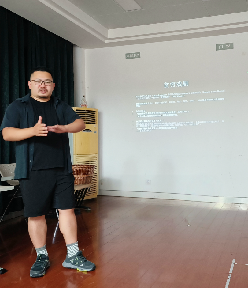 工作坊伊始,杨一心老师追溯概念本源。贫穷电影这一概念晚于格洛托夫斯基提出的贫穷戏剧。格洛托夫斯基指出,贫穷戏剧有意识的剥除戏剧中一切非本质因素,强调演员和观众之间的交流,并认为演员和观众之间活的交流,就是戏剧的本质。当时戏剧受到电影的影响,遭遇了失去独特性的困境,戏剧没有电影那种多样的表现手法,但可以在贫穷中胜出。