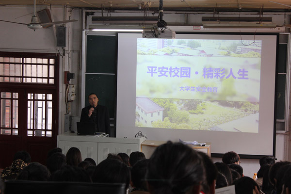 11月19日在西部一教207,我院邀请校保卫处陆金权老师为2014年级新生开展“平安校园·精彩人生——大学生安全讲座”。该讲座由我院副书记副院长孙雅艳老师主持,现场气氛热烈,同学们积极响应。