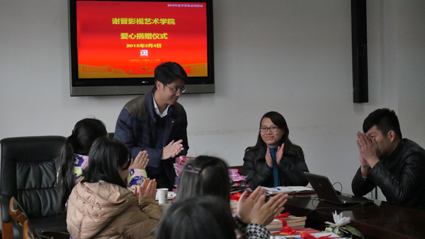 3月4日,谢晋影视艺术学院在教苑楼A202举行了捐赠仪式,向华泾镇七彩小屋捐赠了书籍、文具和电子琴。上海市徐汇区华泾镇团委书记陶荣以及谢晋学院院办主任翁晓玲、团委书记姚萍、爱心义工队负责老师张婉婉以及部分学生志愿者代表参加了此次捐赠仪式。