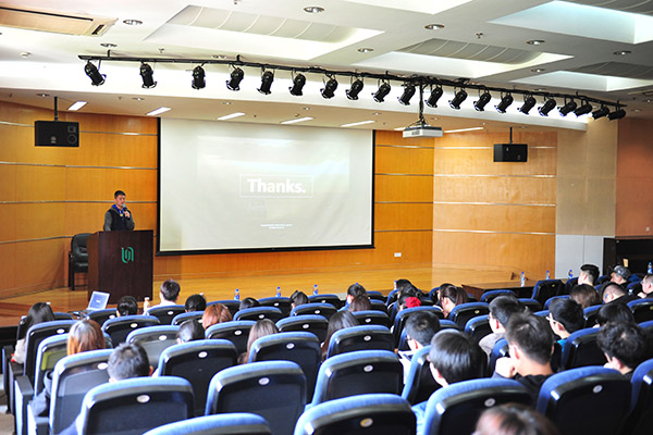 在宣讲会上,赵炳翔院长首先表达了对上海炫动传播股份有限公司、炫动卡通卫视和哈哈少儿频道所有领导和工作人员的感谢。赵院长强调要珍惜缘分,以师哥为榜样,鼓励同学们抓住机会多学习,要提前了解就业形势,趁年轻多做实事。随后,鱼总结合视频和PPT就公司概况、频道栏目设置等内容作了详细的讲解,诠释了“我们服务于成长”的公司理念。副总经理杨毅则生动形象地介绍了即将上档的几档节目,让大家进一步了解了节目的定位。最后,校友戎立斐用轻松诙谐的语言和大家分享了自己的学习和工作经验,并且和大家进行了提问互动,会后大家还踊跃提交了简历。