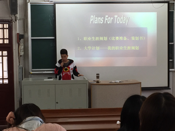看到学长的经历,我们深刻了解到机会是留给有准备的人的,它在你面前,要是想要抓住它必须努力奋斗。这次的讲课对我们全体14级同学起到了鼓舞和推动作用,每个人都有可能成为下一个成功的职业规划者,每个人都有可能成为下一个佼佼者,每一个人都有可能成为下一个讲课的学长学姐!有梦想并为之拼搏,相信自己一定能成功。