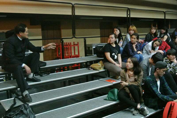 从4月20日开始,我院肢体剧《1971》开始了台湾高校的交流演出活动。 首场演出在中国文化大学。在一个半小时的演出中,大义馆113剧场时而掌声震耳,时而静穆得能听见坠针落地的声音。该校戏剧系主任黄惟馨教授做了这样的评价:“将舞蹈、武术、戏曲、话剧、歌唱等诸多因素融入一个剧中,并有这样摄人心魄的艺术呈现,可见上海师范大学谢晋影视学院戏剧教学质量之高,这是我们没有预料到的。”她向赵炳翔院长表达了与谢晋影视艺术学院结成姐妹学院、互派师生交流、进行实质性合作的愿望。演出结束后,两校师生进行了互动性座谈,交流了戏剧教学的心得感受。尽管夜深雨骤,但文化大学的师生久久不愿离开。