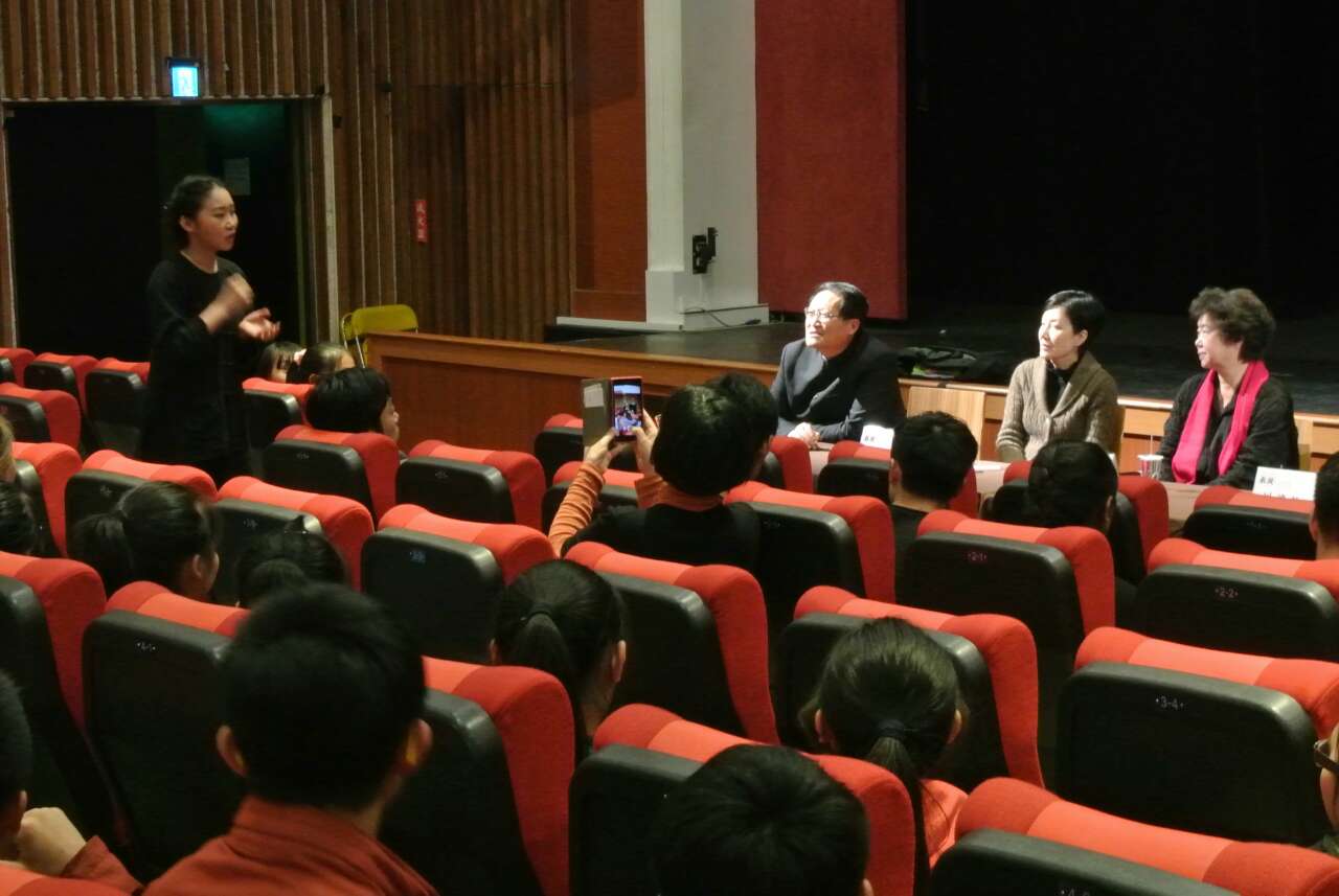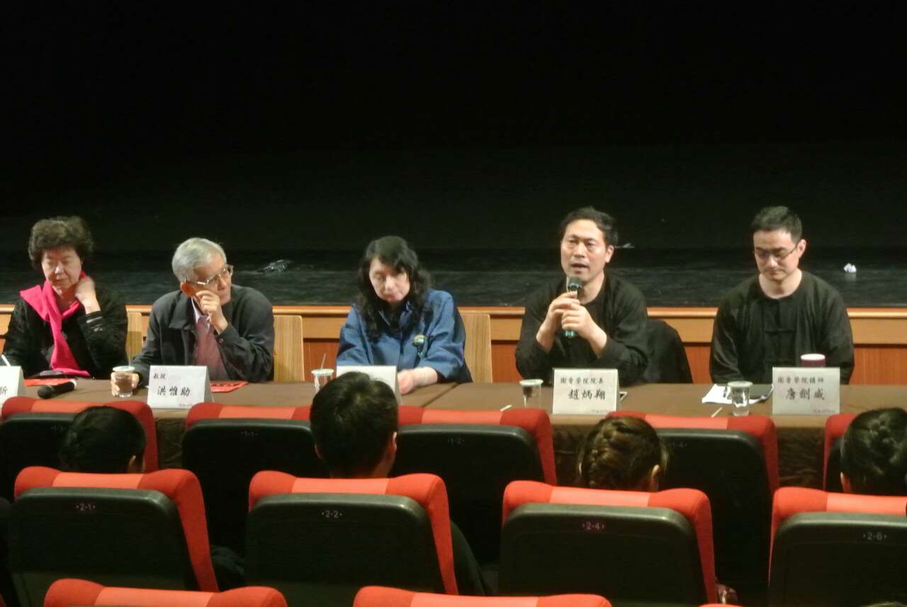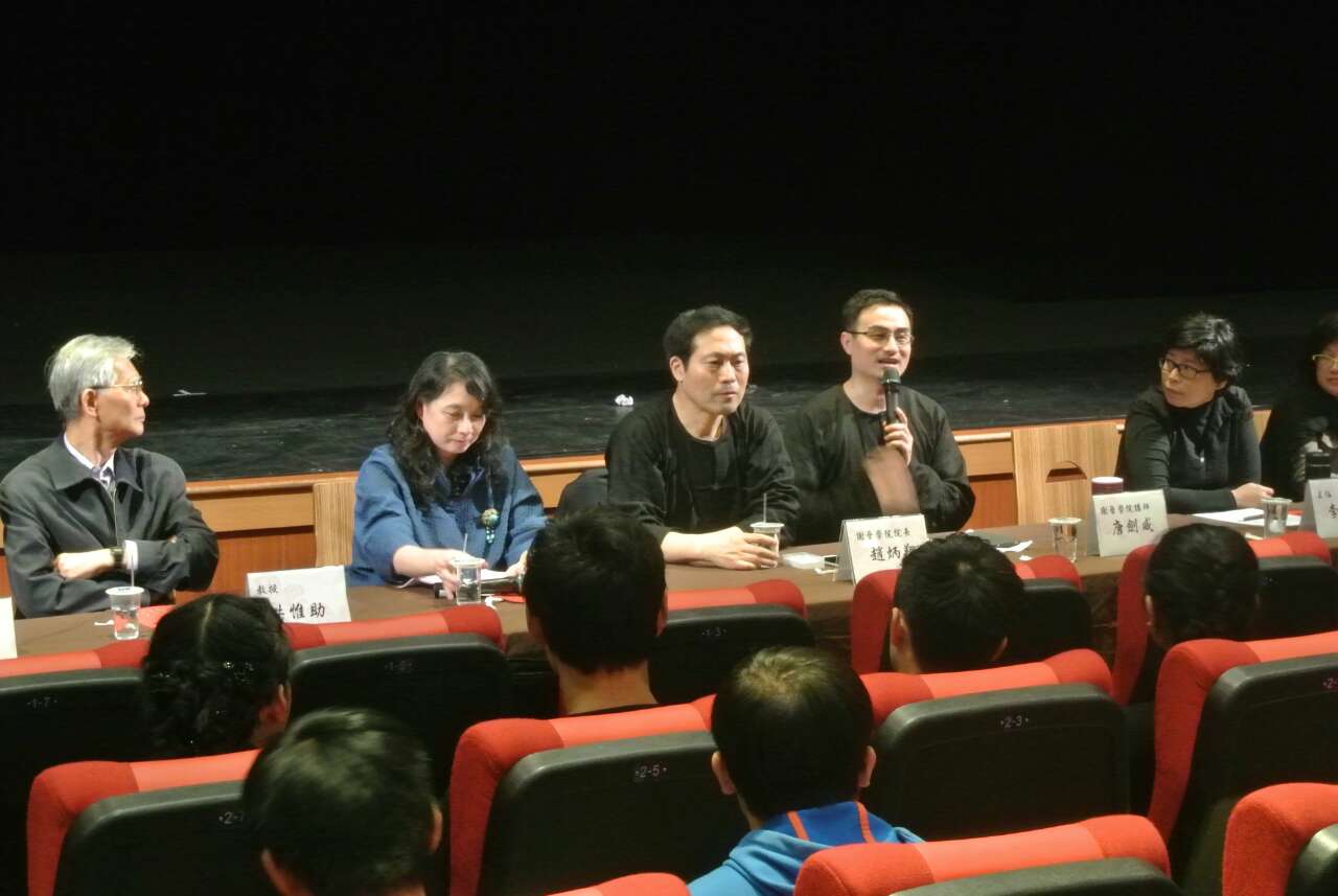 4月22日下午,上海师范大学谢晋影视学院在台湾戏曲学院演出了肢体剧《1971》,前来观赏的除了该院的副校长蔡欣欣教授等十多位教师和五百多名学生外,还有台湾中央大学中文系前主任、台湾昆曲团团长洪惟助教授,台湾大学讲座教授、国光剧团艺术总监王安祈教授,台湾大学戏剧系主任林鹤宜教授等知名人士。演出结束后,台湾戏曲学院为该剧举办了学术座谈会。谢晋影视学院赵炳翔院长、朱恒夫教授、唐剑威导演以及所有演职人员也参加了座谈会。