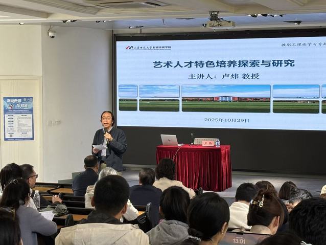 为深入学习领会《习近平谈治国理政》第五卷精神,切实将学习成果转化为推动学科高质量发展的实际成效,2025年10月29日,影视传媒学院在四教B201教室开展全院教职工理论学习活动。本次活动特别邀请浙江传媒学院卢炜教授作题为《艺术人才特色培养探索与研究》的专题讲座,学院杨康贤书记致欢迎辞,齐青副院长主持并作总结讲话。