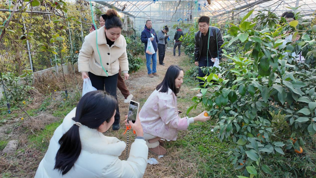 随后前往的先福果园,一派丰收的喜人景象。沉甸甸的“红美人”橙子缀满枝头,果皮泛着诱人的橙红光泽;鲜嫩的时蔬青翠欲滴,透着新鲜的气息。教职工们手提袋子,穿梭在果树与菜畦间,精心挑选、体验采摘乐趣,不时交流着采摘心得,分享着丰收的喜悦。按照活动安排,每位教工可采摘2斤橙子和2斤时蔬,这份满载而归的收获,不仅让大家品尝到秋日的甘甜,更让大家在亲身体验中感受“保障粮食和重要农产品稳定安全供给”的民生温度,深化了对全会精神的理解。