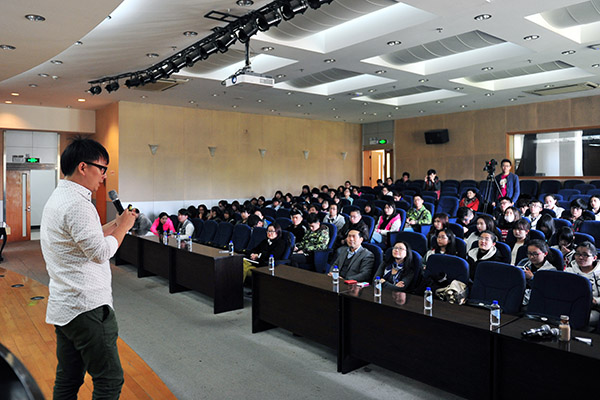 在宣讲会上,赵炳翔院长首先表达了对上海炫动传播股份有限公司、炫动卡通卫视和哈哈少儿频道所有领导和工作人员的感谢。赵院长强调要珍惜缘分,以师哥为榜样,鼓励同学们抓住机会多学习,要提前了解就业形势,趁年轻多做实事。随后,鱼总结合视频和PPT就公司概况、频道栏目设置等内容作了详细的讲解,诠释了“我们服务于成长”的公司理念。副总经理杨毅则生动形象地介绍了即将上档的几档节目,让大家进一步了解了节目的定位。最后,校友戎立斐用轻松诙谐的语言和大家分享了自己的学习和工作经验,并且和大家进行了提问互动,会后大家还踊跃提交了简历。
