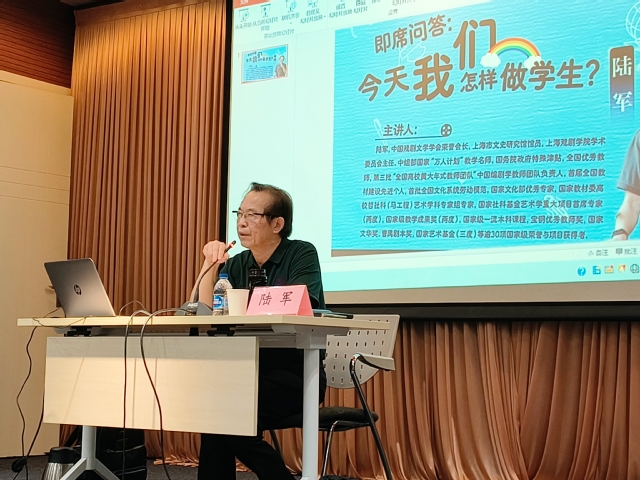 著名剧作家、戏剧理论家、戏剧教育家陆军先生应邀于2025 年6月4日下午登上我校“新时代艺术大讲堂”, 作题为“今天我们怎样做学生”的演讲。